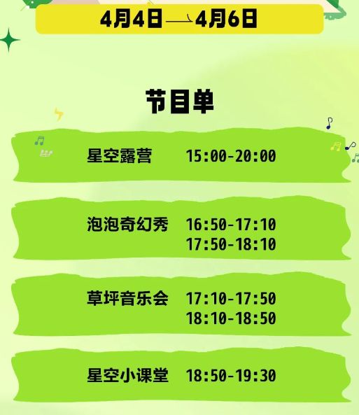 3. "亲子互动": - 设立亲子游乐区,举办亲子游戏,增进家庭间的亲子关系。 - 举办“小小摄影师”比赛,让小朋友们记录下露营的美好瞬间。