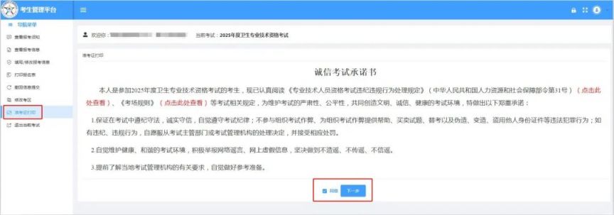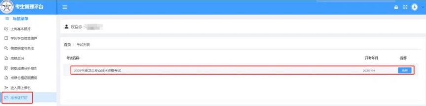 ### 准考证打印入口: