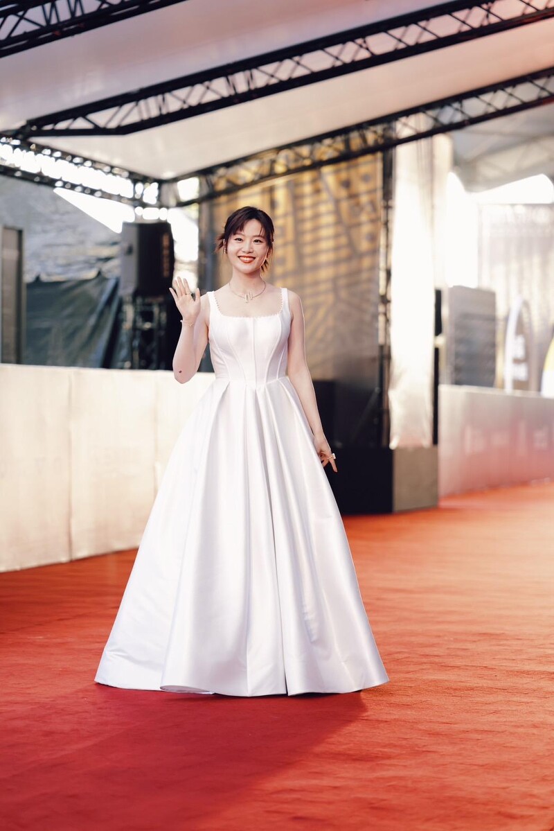 蔡健雅选择浅色的设计感洋装作为红毯造型,优雅的线条轮廓衬托独特的个人气质。