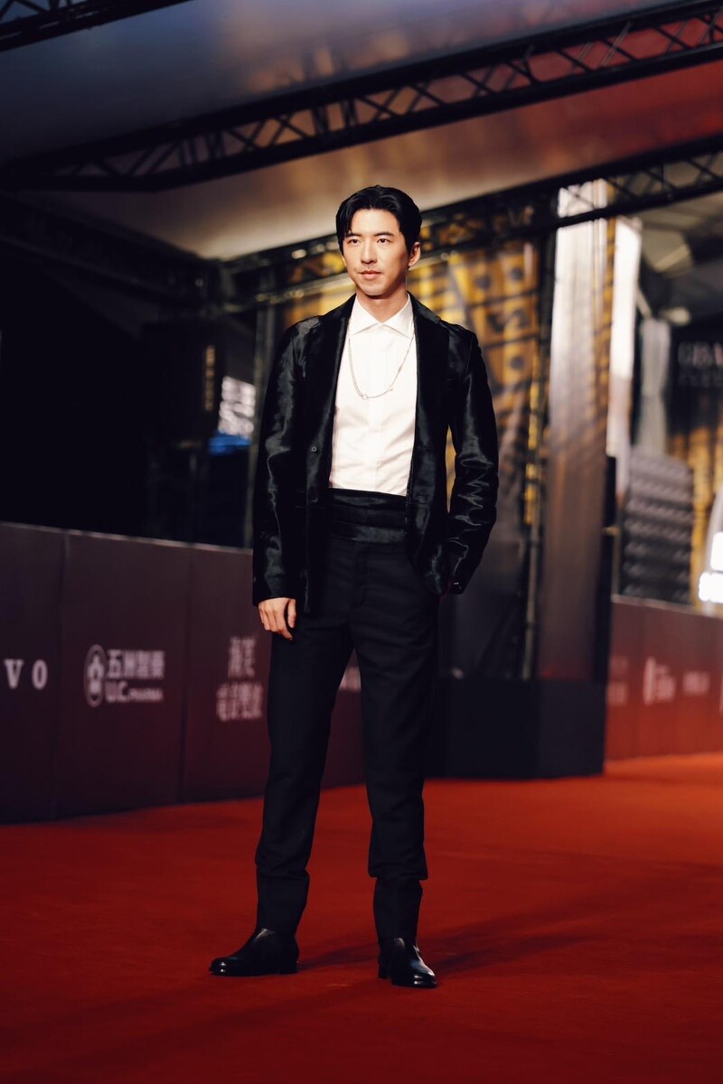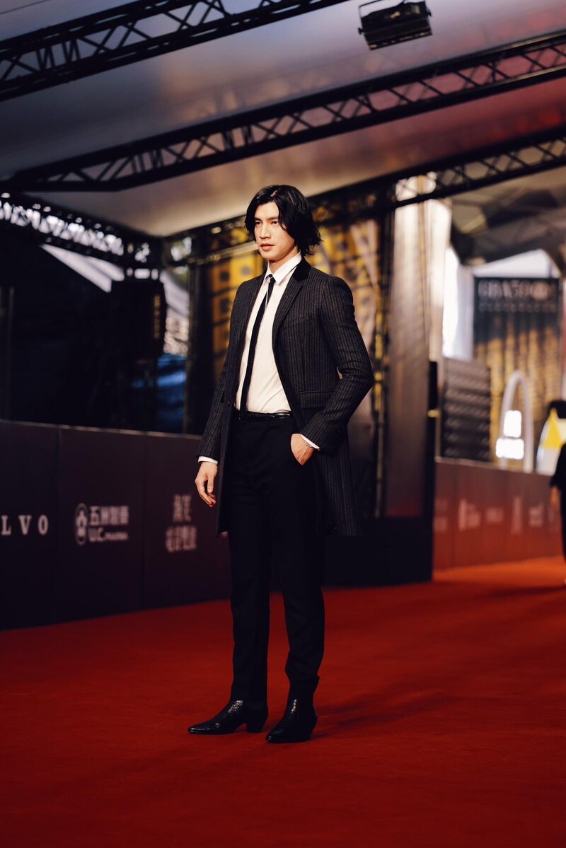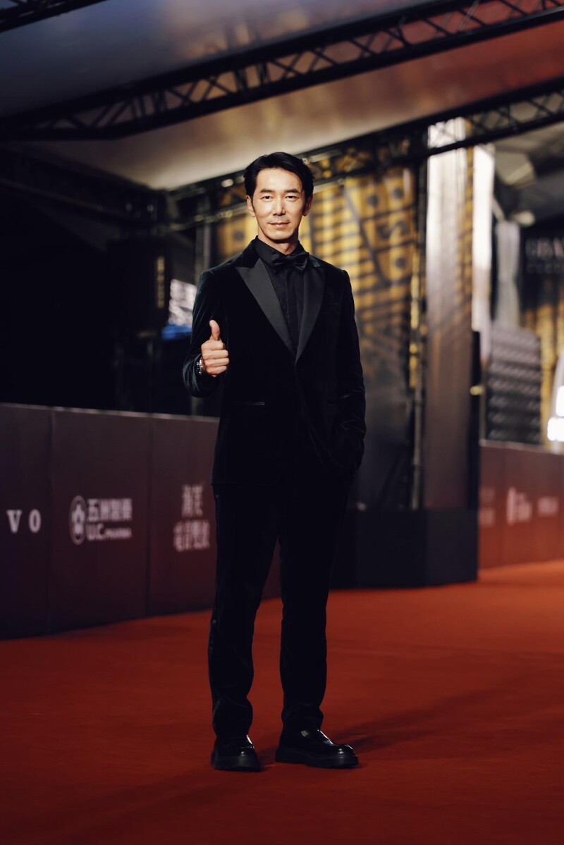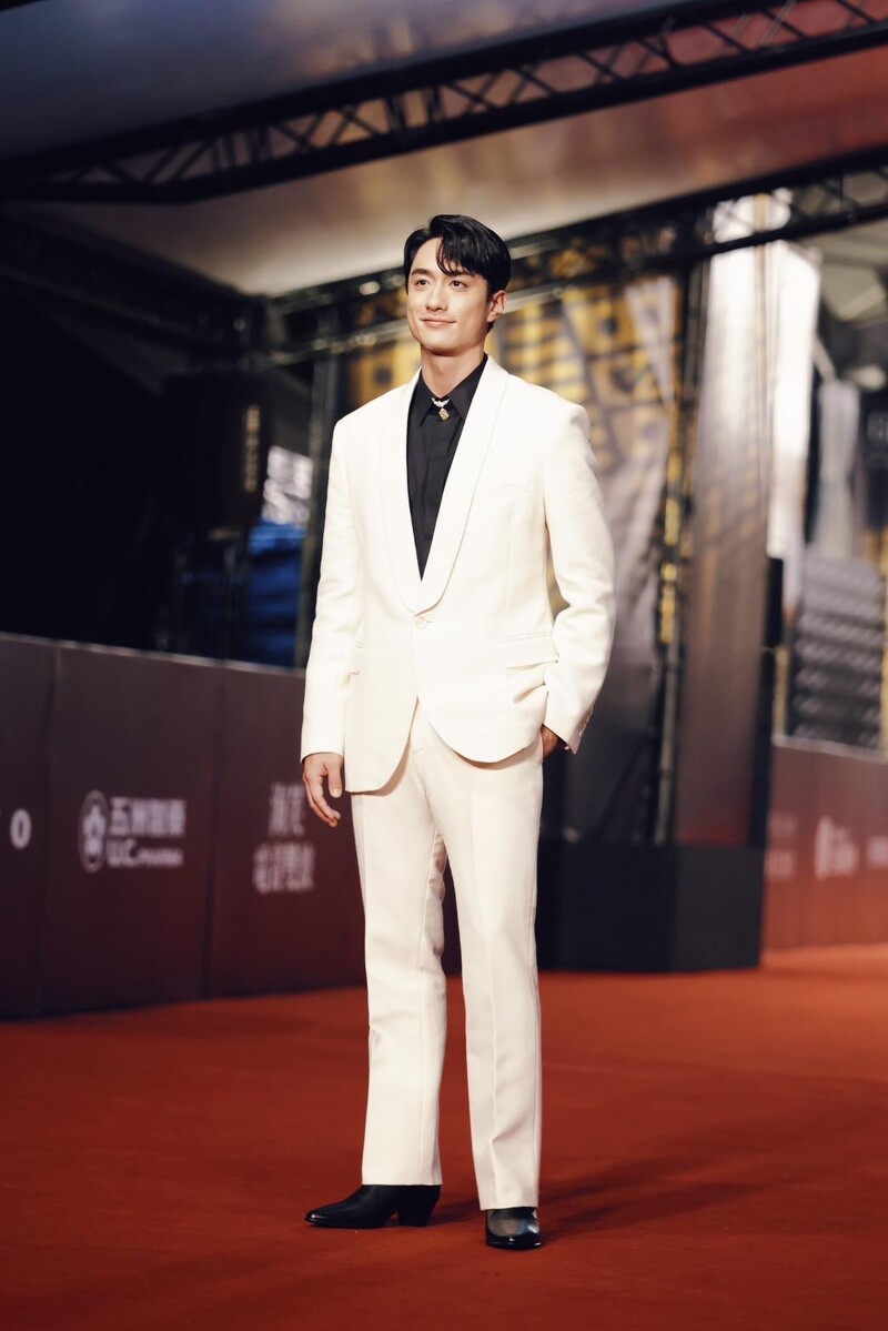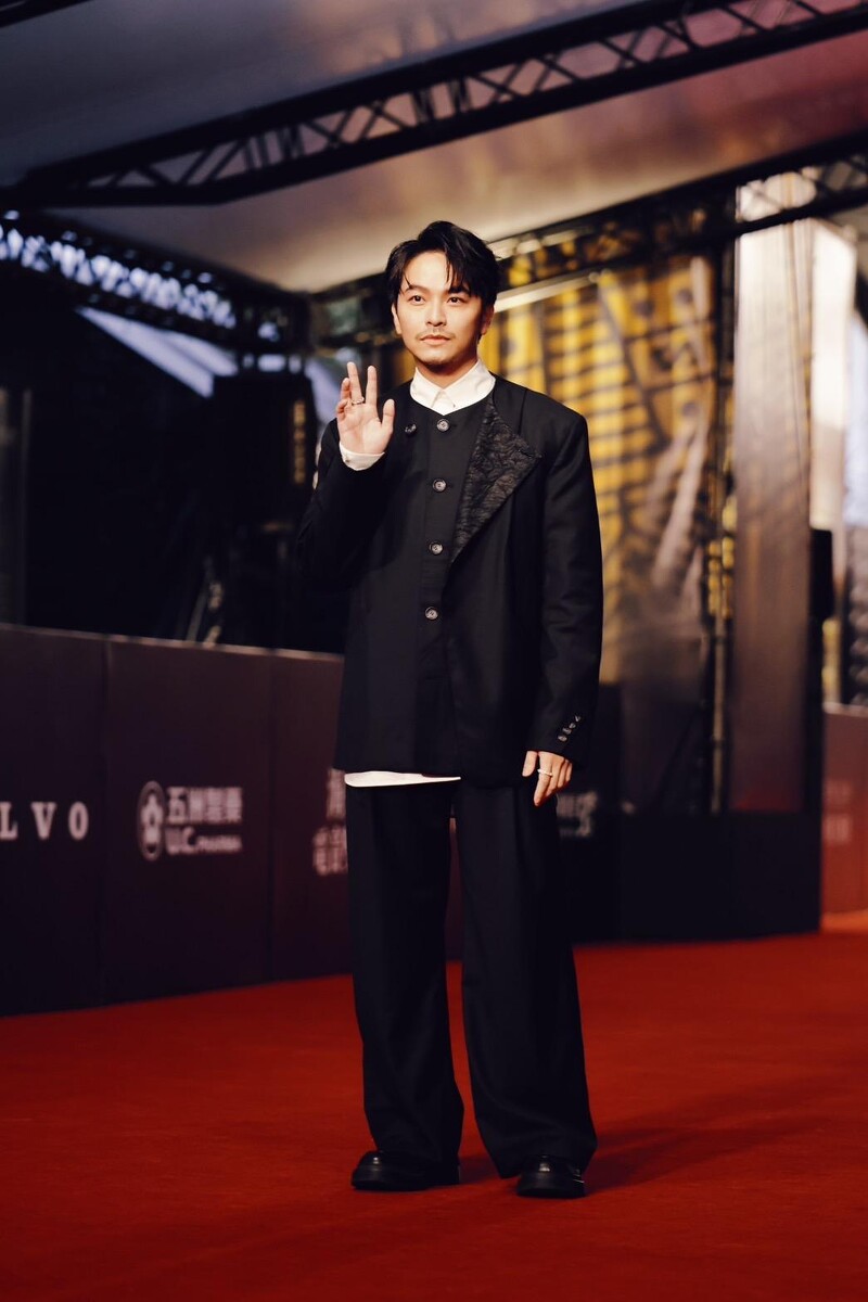 以戏剧作品角逐视帝宝座的傅孟柏今晚选择黑与白的经典正装礼服作为红毯造型,展现自信风範。