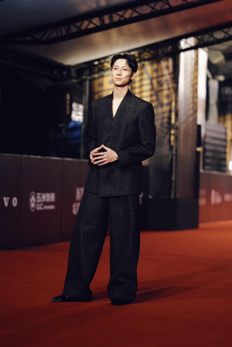 彭千祐一身黑色宽鬆轮廓的 Emporio Armani 西装搭配 Cartier 珠宝点缀典礼造型,简约风格中透露细节质感,衬托本人的好气质!
